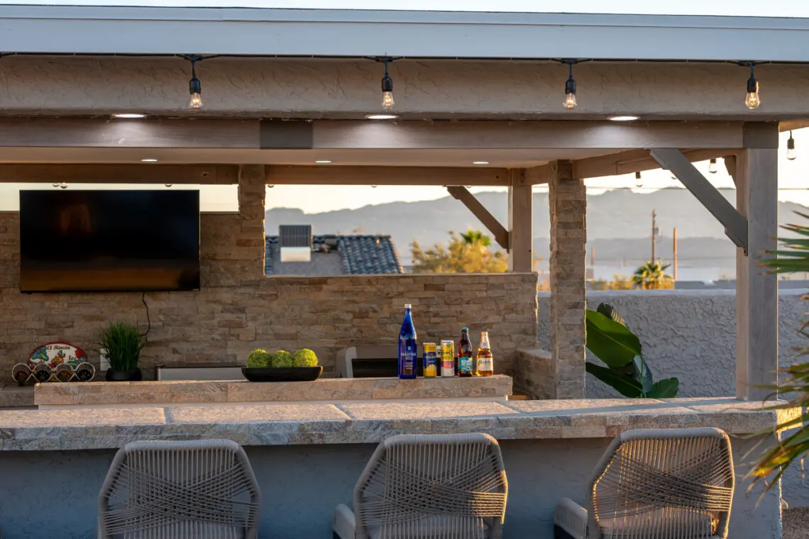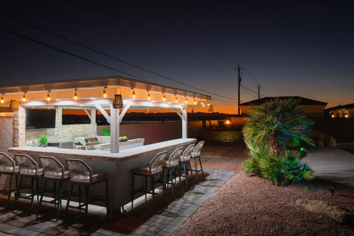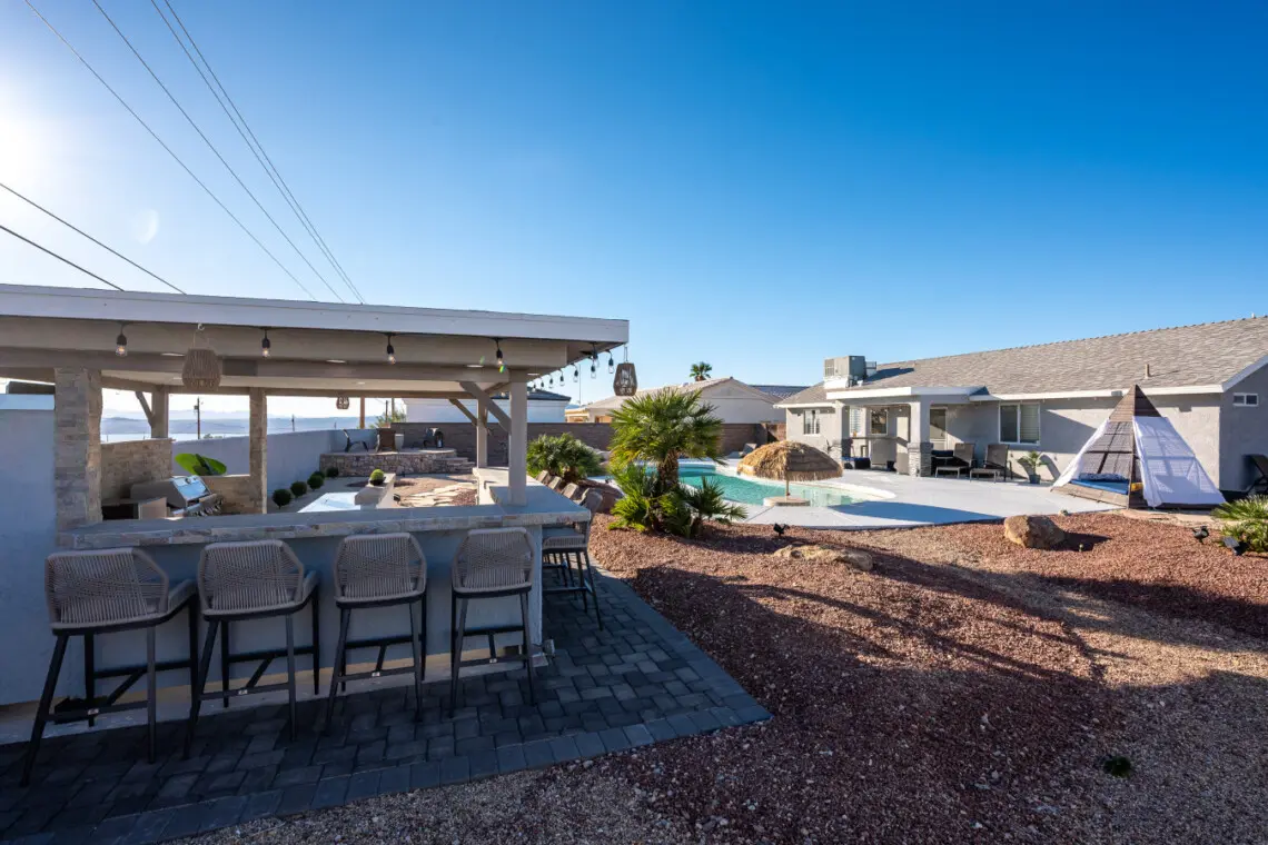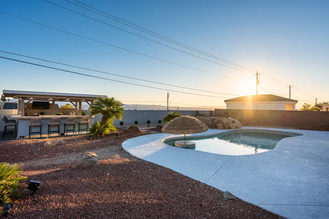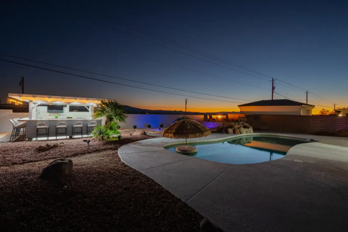 Pool days, sunset deck views, and easy lake living Oasis at Arabian is a stylish 3BR/2BA home made for memory‑making. Sip coffee on the view deck, splash in the private pool, and wind down by the firepit after a day on the water. Inside, an open layout flows from a full kitchen to a comfy living area with TV. Fast Wi‑Fi, central A/C & heat, and in‑home laundry keep things effortless. To top it off there is even a fully loaded game room with Ping-Pong, Pool table, video game system, and darts! You’re minutes from London Bridge, Windsor Beach, and Lake Havasu State Park—come for sunshine, stay for the sunsets.