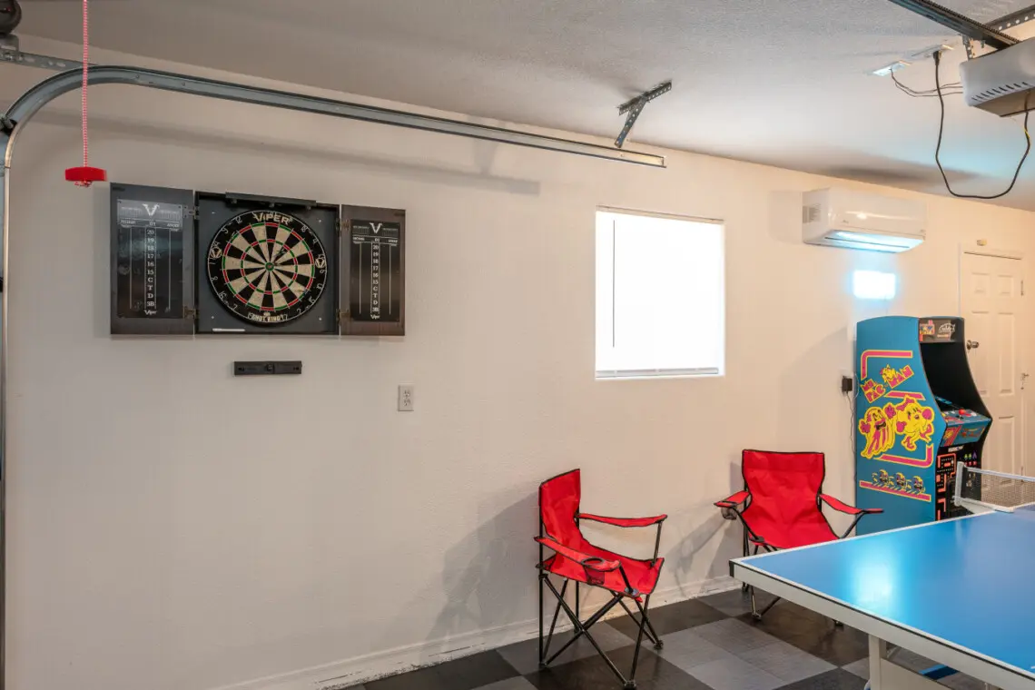 Enjoy all the family fun with pool table, ping-pong, arcade games, darts and more! The garage is fully stocked and air -conditioned for everyone’s enjoyment.